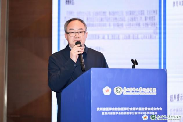 2月17日至18日,由贵州省医学会检验医学分会主办、贵州医科大学附属医院承办的“贵州省医学会检验医学分会第六届全委会成立大会暨贵州省医学会检验医学分会2023年学术年会”在贵阳举行。中华医学会检验医学分会主任委员王成彬、贵州省医学会会长杨克勤、贵州省医学会副会长兼秘书长张涌、我院院长左石出席并讲话,我院副院长黄海主持,省内外相关领域70余名专家学者和全省各市州县近600名检验同道参会。